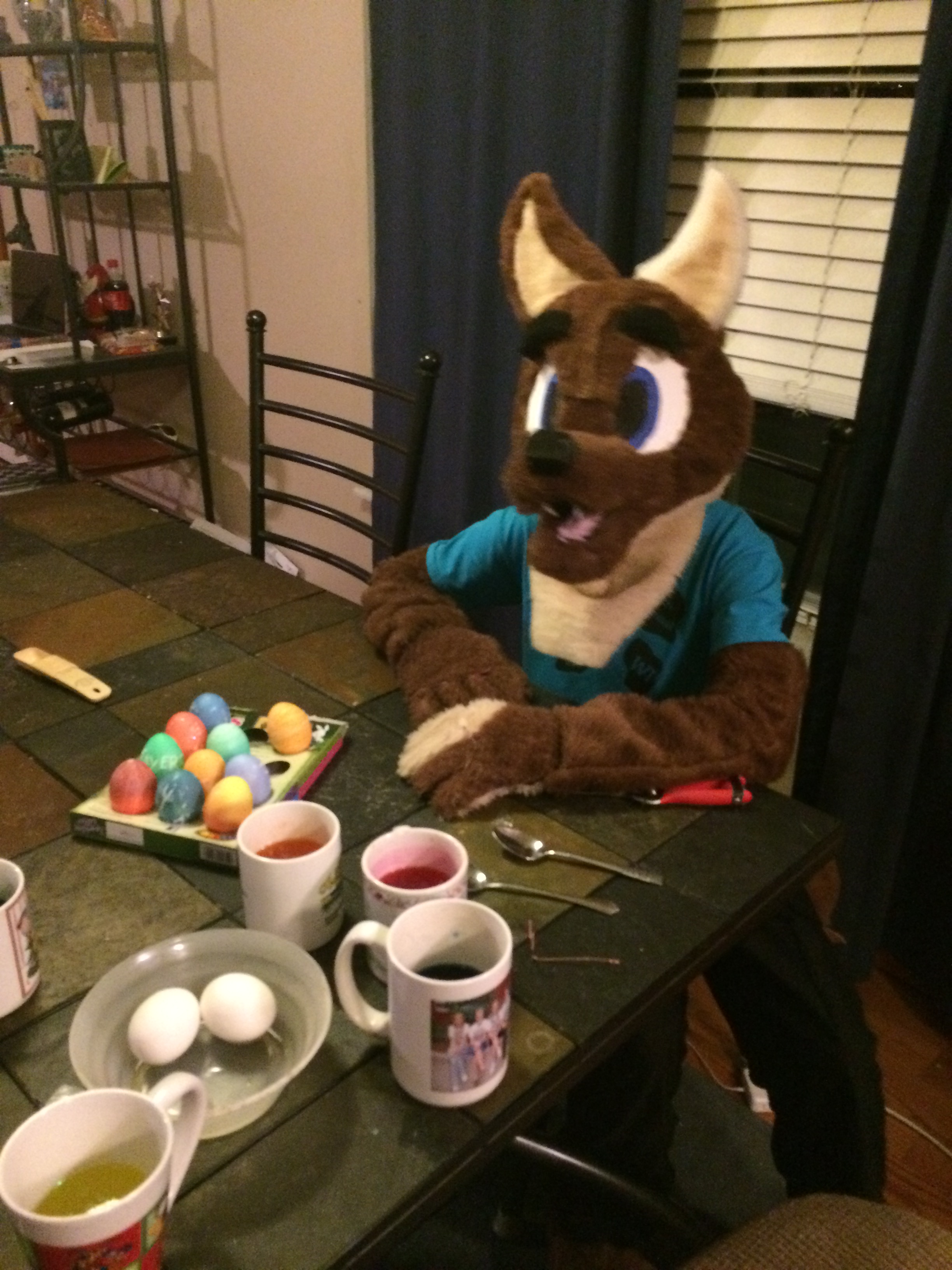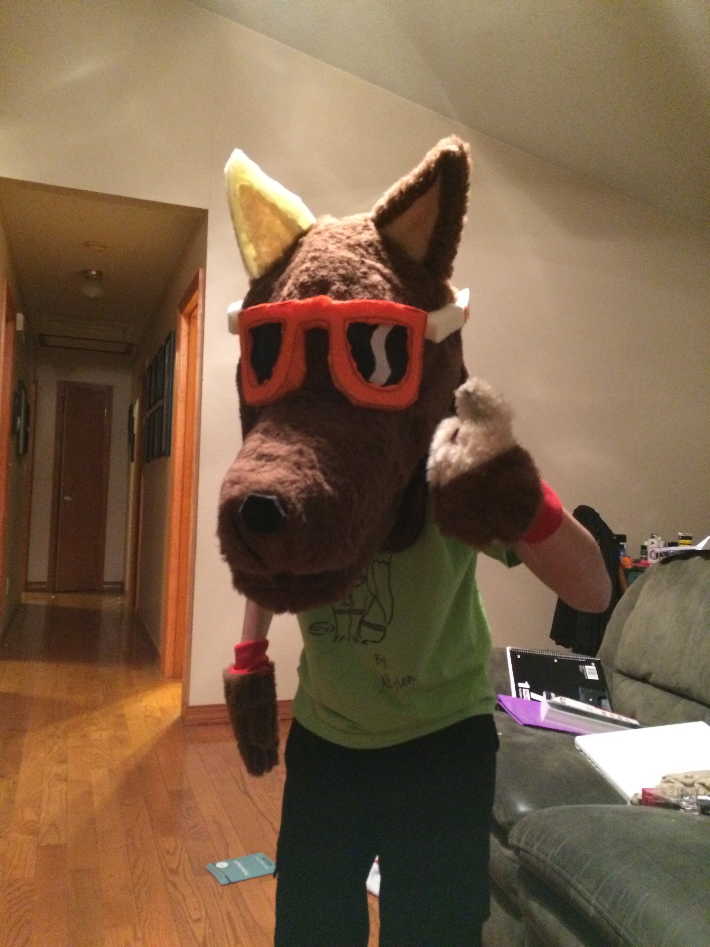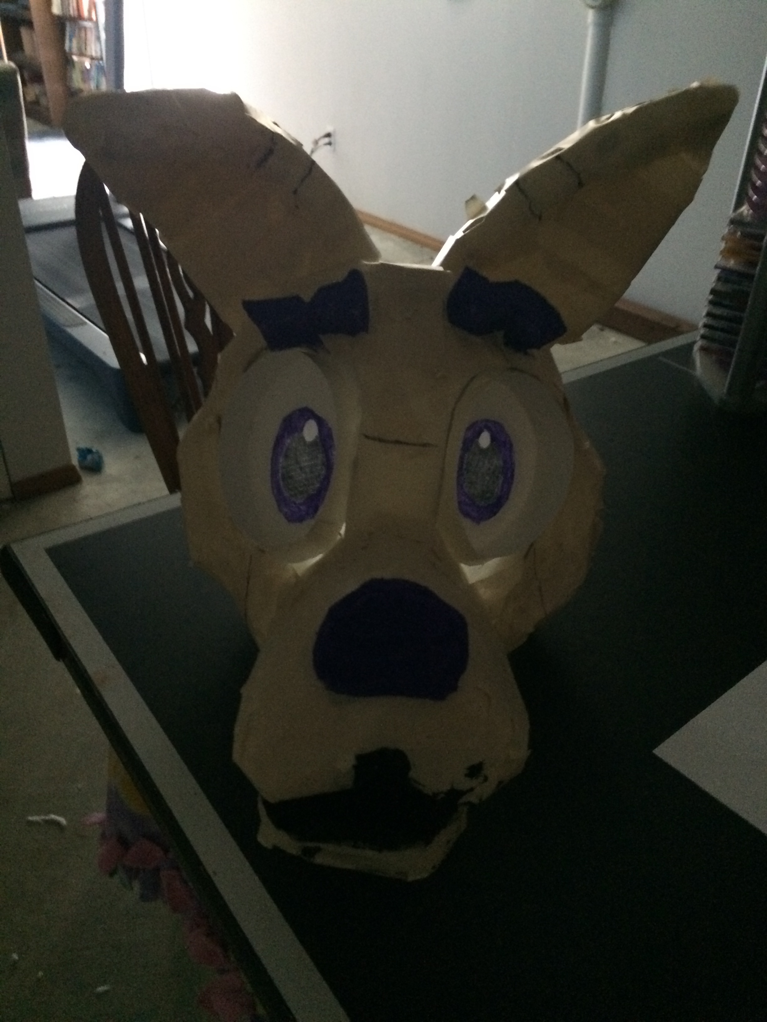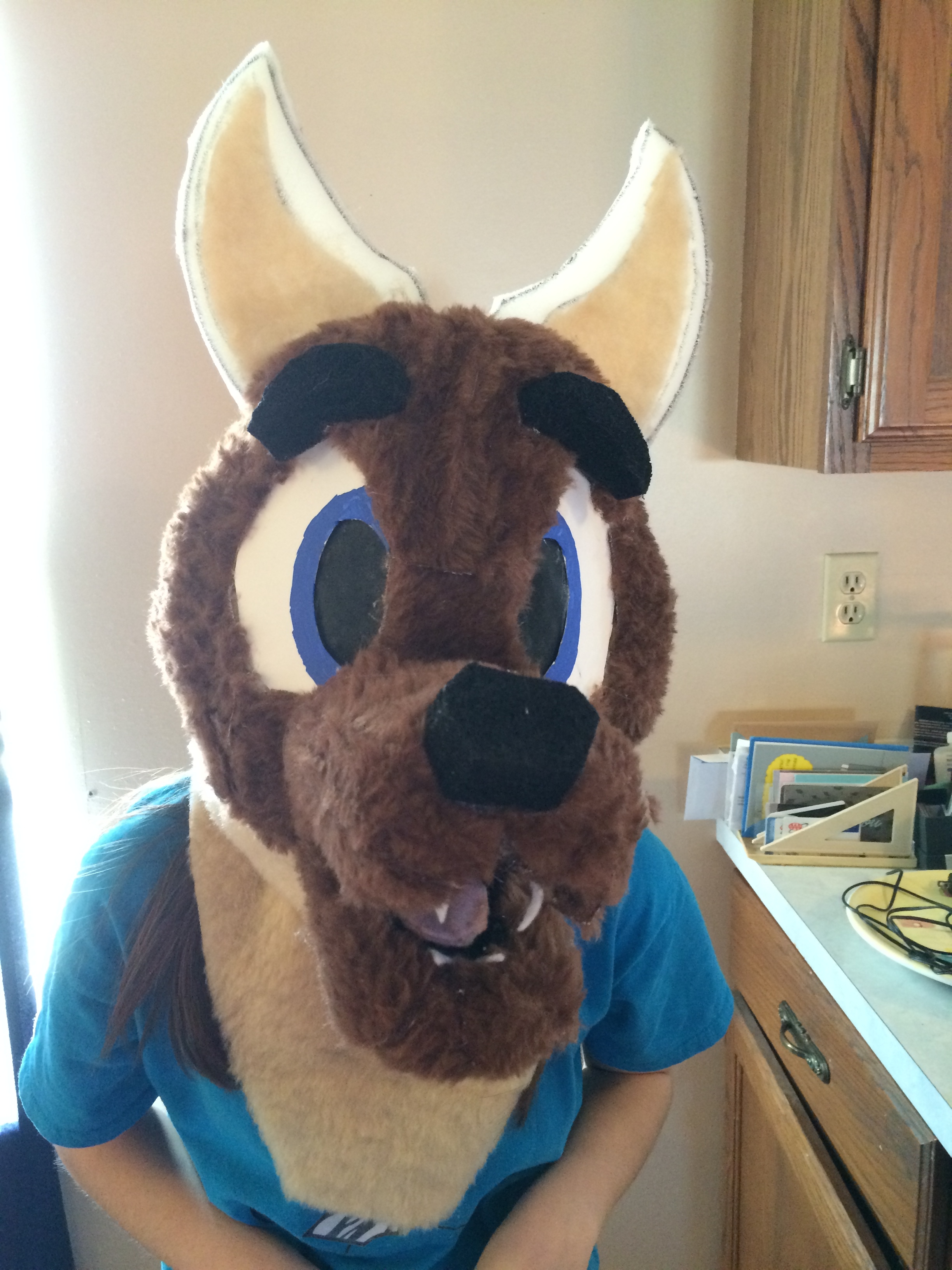 Sometime in January or February she became interested in fur suits and fur suit dancing so she decided to create her own. She started with the head and watched YouTube videos and did it all on her own. She then had me make the body of the costume while she did the hands and feet. However, it was so hot with all of it on, she rarely if ever wears the costume and instead cut out sleeves and had me sew them for her on the sewing machine. So this was her first attempt.