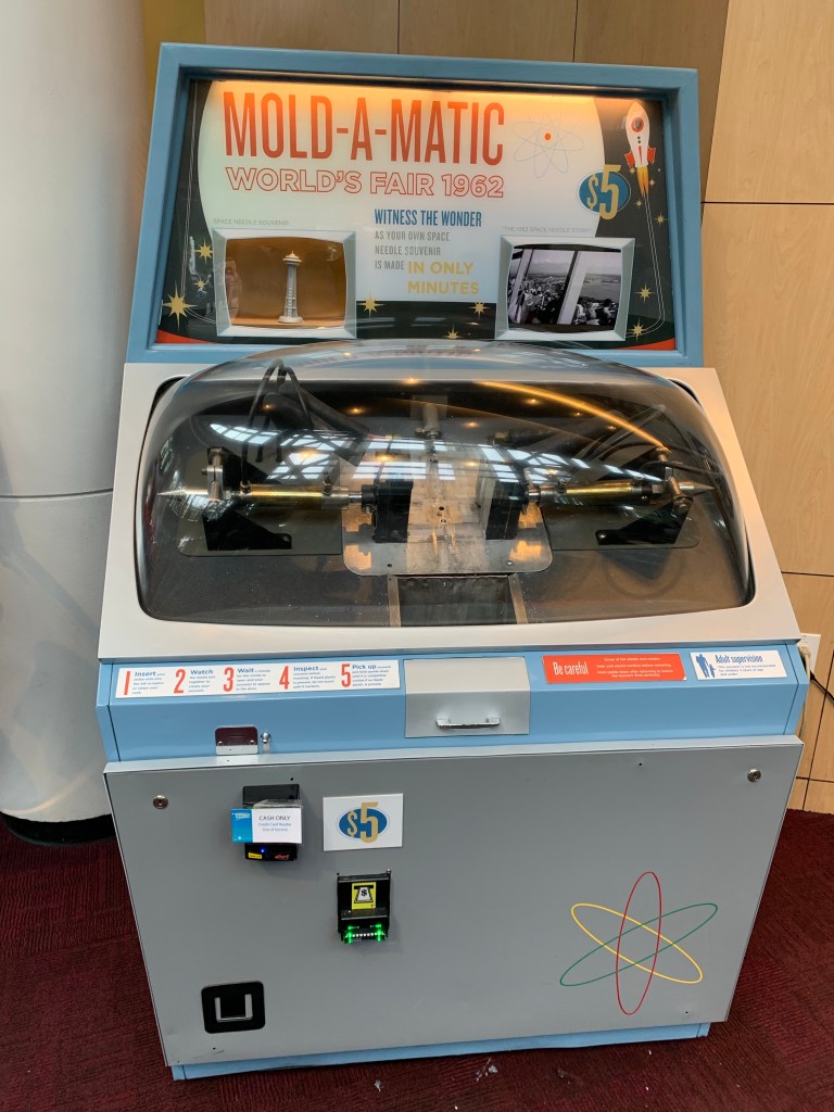 I was instantly transported back to my childhood. I remember these little machines from the St. Louis Zoo and they would make animals. I vaguely remember an orange giraffe. So I texted the girls and told them where I was at as they had to see this. Masks were required inside the space needle so it’s hard to see how thrilled they were at my insanity.