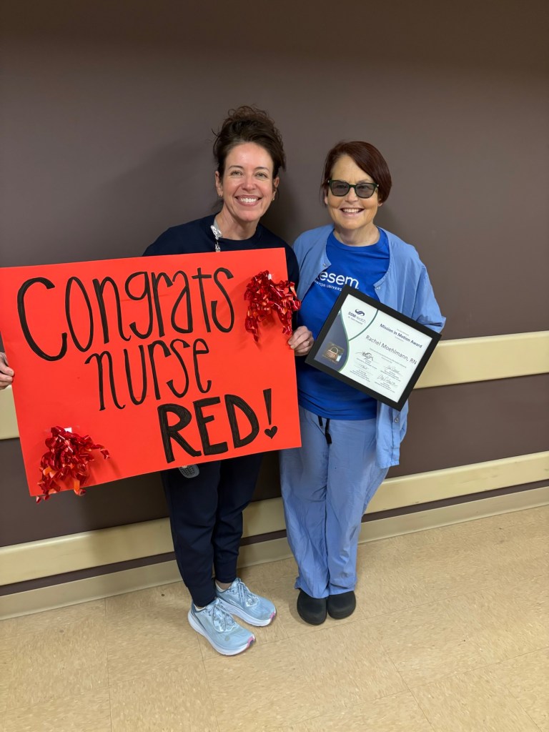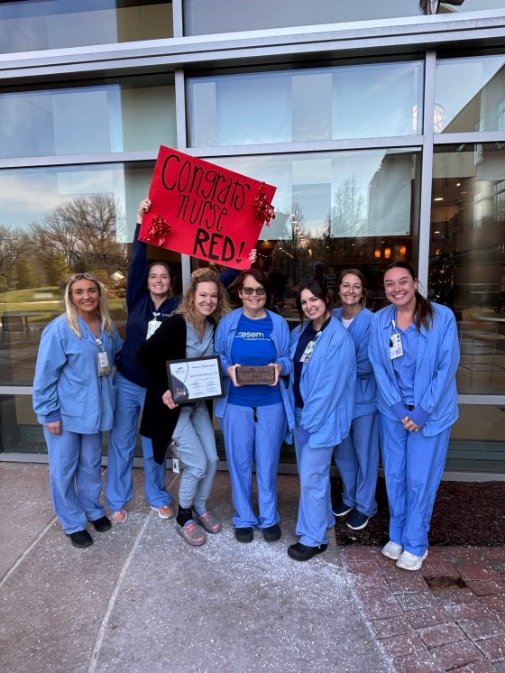 A little over two weeks ago I received a daisy nomination from my co-worker Ally for being a resource in endo and the care I have given to patients in the past by following up with them on the floor after procedures. That same day Kelly (she volunteers at Kesem Wash U with me as Nurse Needles) says to me, well I guess you didn’t get the Mission in Motion award. I looked at her very confused and she said I nominated you months ago for your involvement with Camp Kesem and I guess it’s all over with. Three days later Ally texted me to tell me I had won the award. I said oh please go to tell Kelly as I was off and I knew Kelly was working. Later on that afternoon Ally texted me to say Jodi wanted to know if I was working Monday so I said I better make sure my hair is in place for photos.
