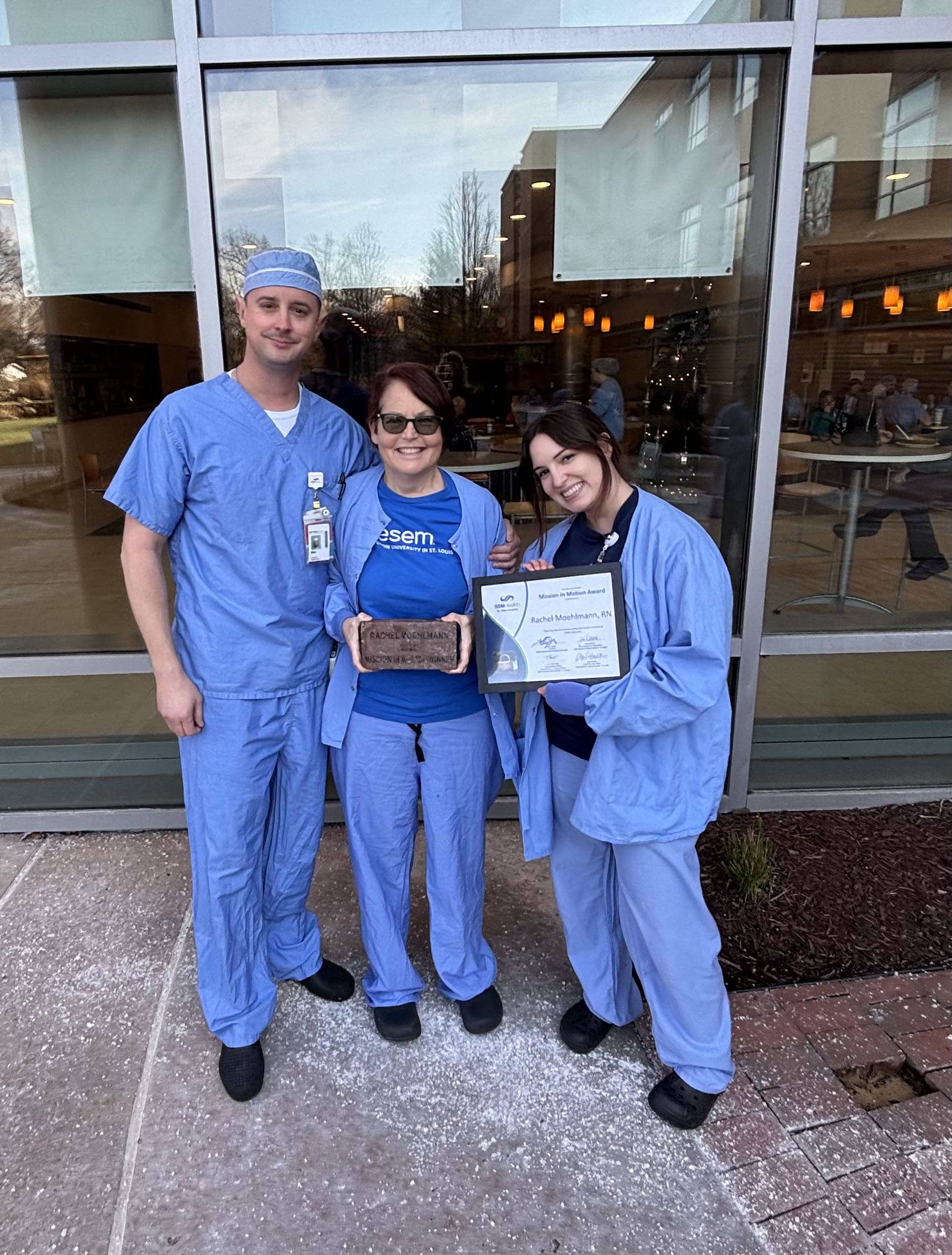 A little over two weeks ago I received a daisy nomination from my co-worker Ally for being a resource in endo and the care I have given to patients in the past by following up with them on the floor after procedures. That same day Kelly (she volunteers at Kesem Wash U with me as Nurse Needles) says to me, well I guess you didn’t get the Mission in Motion award. I looked at her very confused and she said I nominated you months ago for your involvement with Camp Kesem and I guess it’s all over with. Three days later Ally texted me to tell me I had won the award. I said oh please go to tell Kelly as I was off and I knew Kelly was working. Later on that afternoon Ally texted me to say Jodi wanted to know if I was working Monday so I said I better make sure my hair is in place for photos.